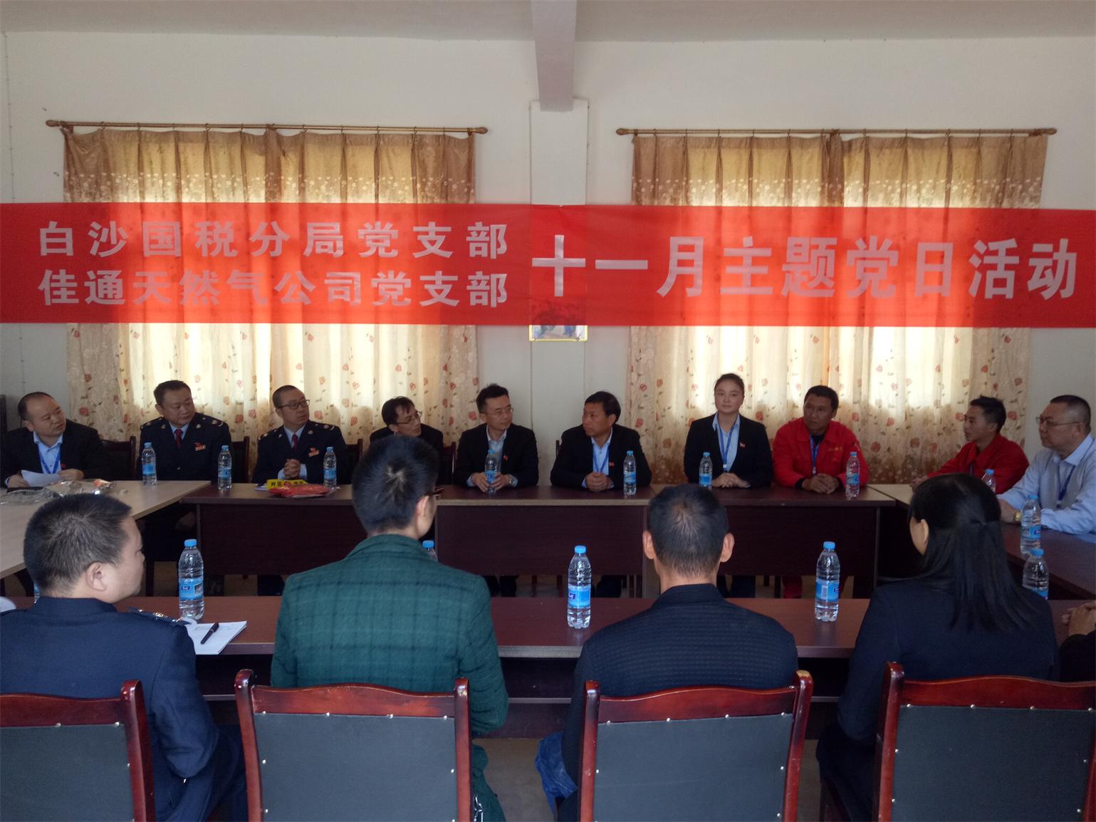 佳通燃?xì)夤军h支部與白沙國稅分局黨支部在落漩塘村委辦公室開展十一月主題黨日活動。公司從去年開始對口幫扶落漩塘村,共幫扶十幾戶困難戶子女上學(xué)和就業(yè),為落漩塘村學(xué)校完善教育設(shè)施。此次到落漩塘村開展幫扶活動,為孩子們贈書包、文具,給困難戶送慰問品!凹淹ㄈ?xì)夤緦⑴c落漩塘村共同努力,一定要讓山區(qū)困難孩子讀得起書,讓困難戶早日脫貧”是李紹軍董事長在看望落漩塘村孩子們時(shí)講得最多的一句話。