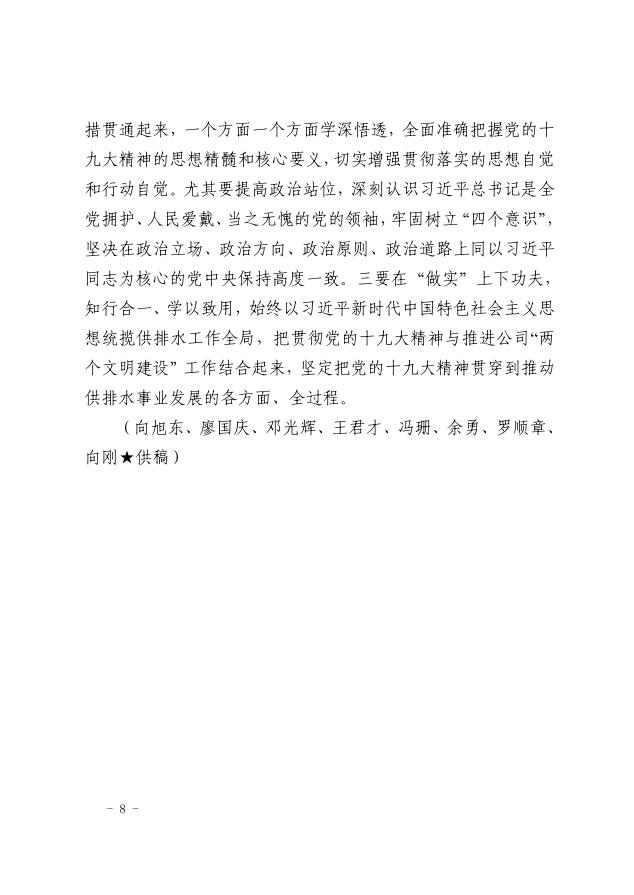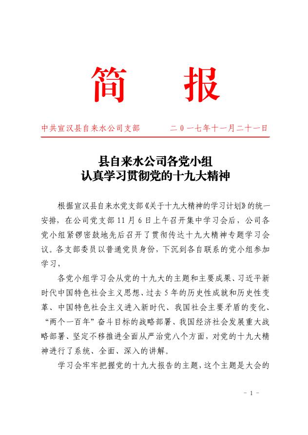 宣漢自來(lái)水公司各黨小組認(rèn)真學(xué)習(xí)貫徹黨的十九大精神
