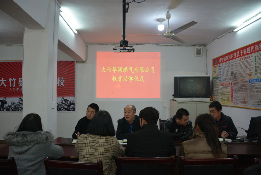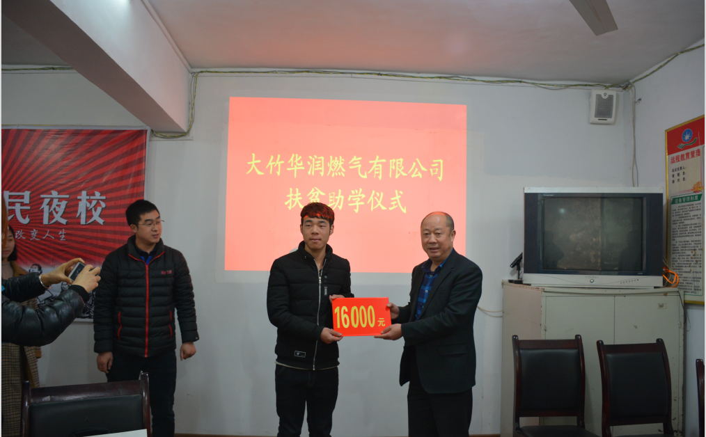 2月28日,大竹華潤燃?xì)庥邢薰军h委書記、總經(jīng)理張尚筠同志一行人,來到觀音鎮(zhèn)雙河口村(公司結(jié)對幫扶村)對貧困大學(xué)生肖光銀、張心紅進(jìn)行了助學(xué)幫扶。