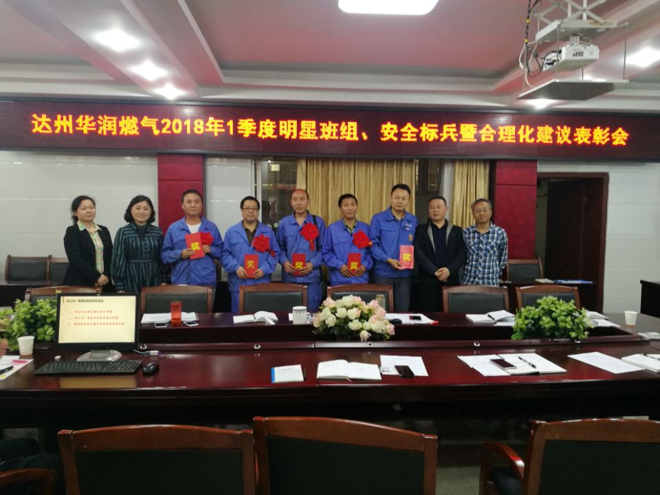 4月10日下午,達(dá)州華潤燃?xì)庥邢薰九e行了2018年一季度明星班組、安全標(biāo)兵暨安全生產(chǎn)合理化建議表彰會。