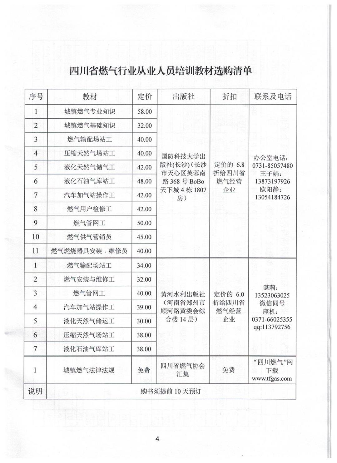 四川省燃?xì)庑袠I(yè)從業(yè)人員培訓(xùn)教材選購清單