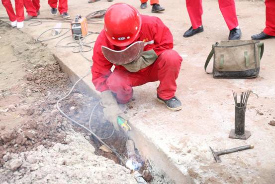 (應(yīng)急演練正式拉開序幕,一燃氣職工已趕往事故現(xiàn)場,向公司總指揮匯報情況)
