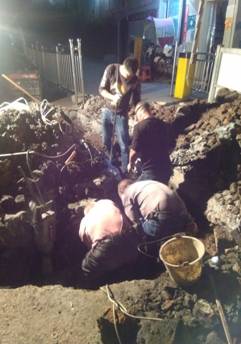 10月4日晚搶修隊接報,桓源上城小區(qū)大門口出現(xiàn)爆管現(xiàn)象。搶修人員立即趕到現(xiàn)場勘查,經(jīng)查系埋于此處的DN160㎜塑管管道發(fā)生爆管,在不影響該供水片區(qū)正常供水情況下,經(jīng)研究搶修人員于晚上20:30左右開始斷水搶修。因爆管處為混凝土地面,且作業(yè)區(qū)域較小,不適宜大型機(jī)械作業(yè),給搶修工作帶來一定難度,搶修人員只能通過電錘對路面進(jìn)行人工開挖,經(jīng)過近7個小時緊張搶修,次日凌晨3點左右搶修完畢并恢復(fù)正常供水。