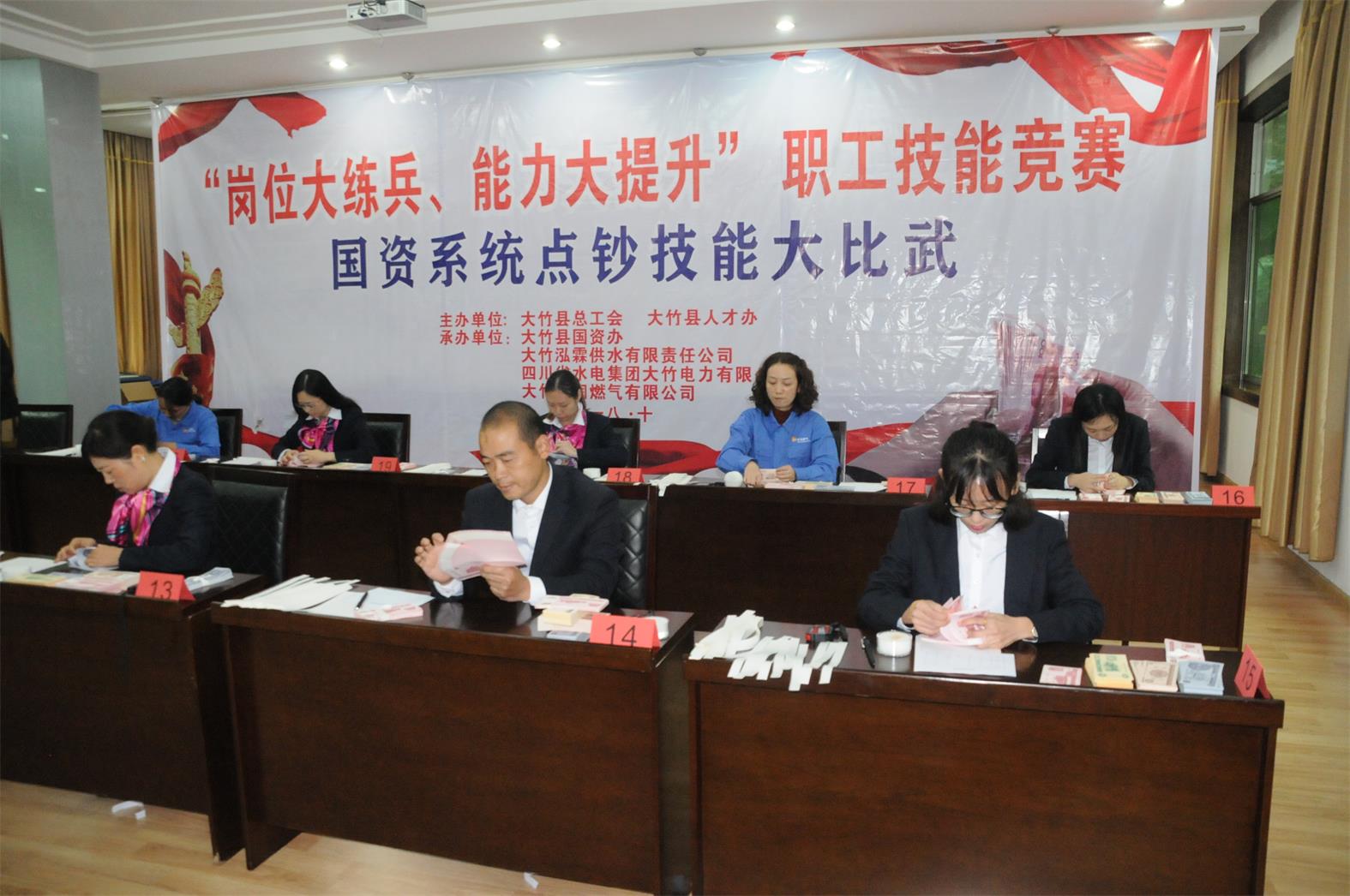 泓霖供水公司參加國資系統(tǒng)2018年點(diǎn)鈔技能大比武獲佳績。為全面提升國資系統(tǒng)窗口服務(wù)人員綜合素質(zhì),10月19日,由大竹縣總工會(huì)、縣人才辦主辦,縣國資辦、大竹泓霖供水公司、大竹華潤燃?xì)夤、四川省水電集團(tuán)大竹電力公司承辦的“崗位大練兵、能力大提升”國資系統(tǒng)點(diǎn)鈔技能大比武在泓霖供水公司隆重舉行。
