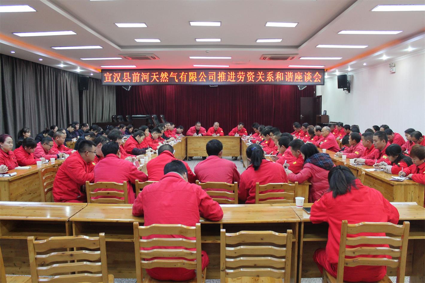2018年11月30日,宣漢縣前河天然氣有限公司工會(huì)組織行政方和全體職工88人專題召開(kāi)了推進(jìn)勞資關(guān)系和諧座談會(huì)。公司工會(huì)主席李彥靜同志主持了會(huì)議。