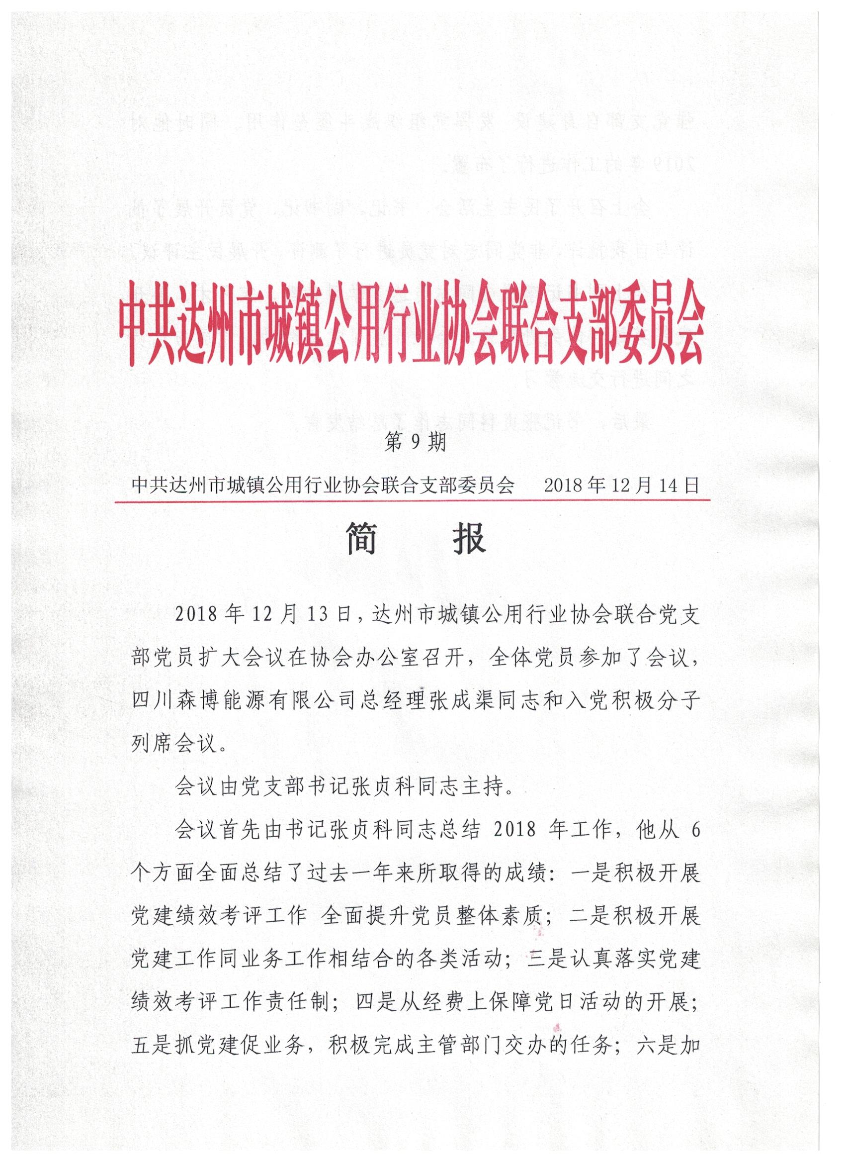 中共達(dá)州市城鎮(zhèn)公用行業(yè)協(xié)會聯(lián)合支部委員會2018年第九期簡報(bào)