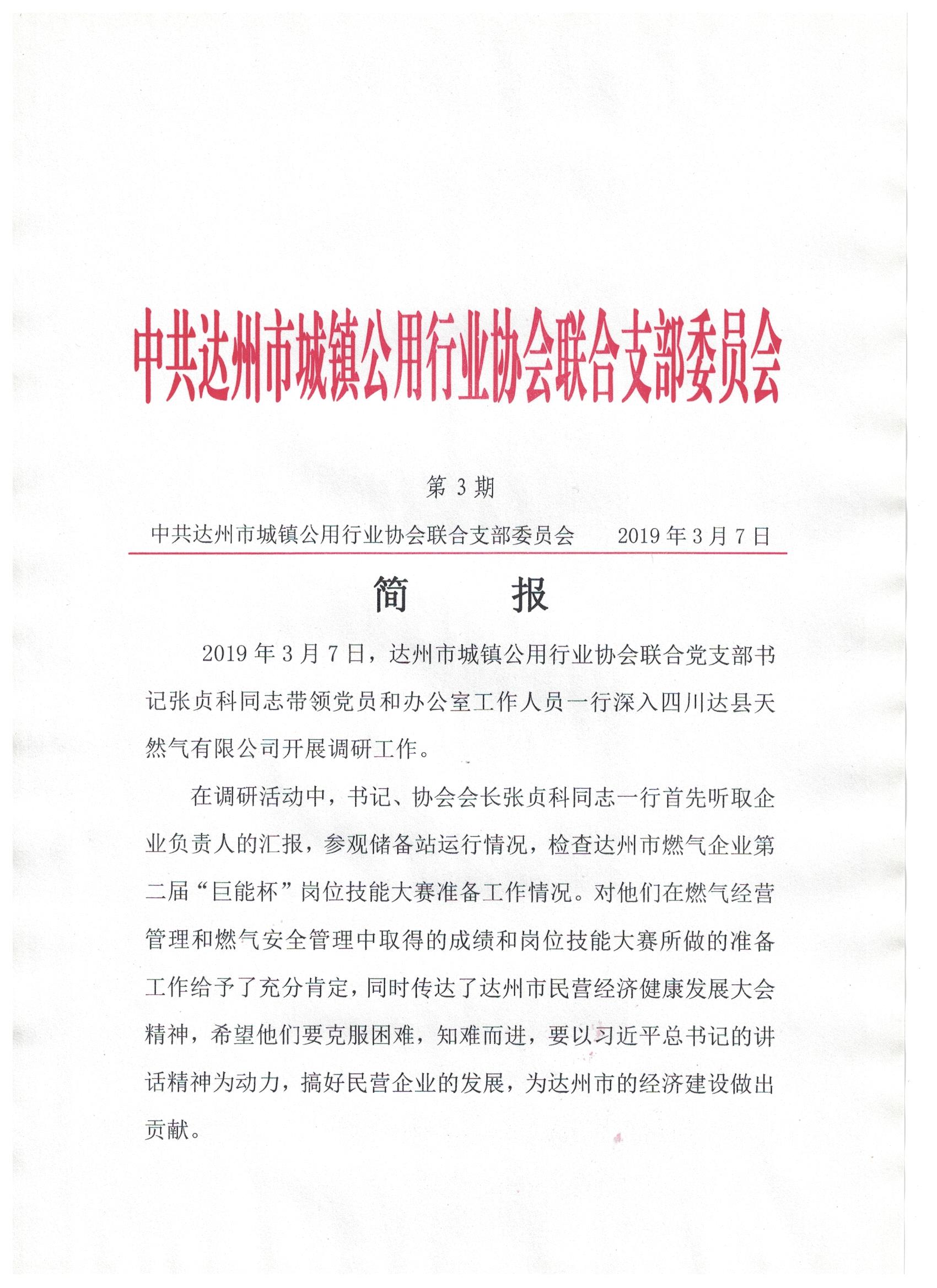 中共達(dá)州市城鎮(zhèn)公用行業(yè)協(xié)會聯(lián)合支部委員會2019年第三期簡報