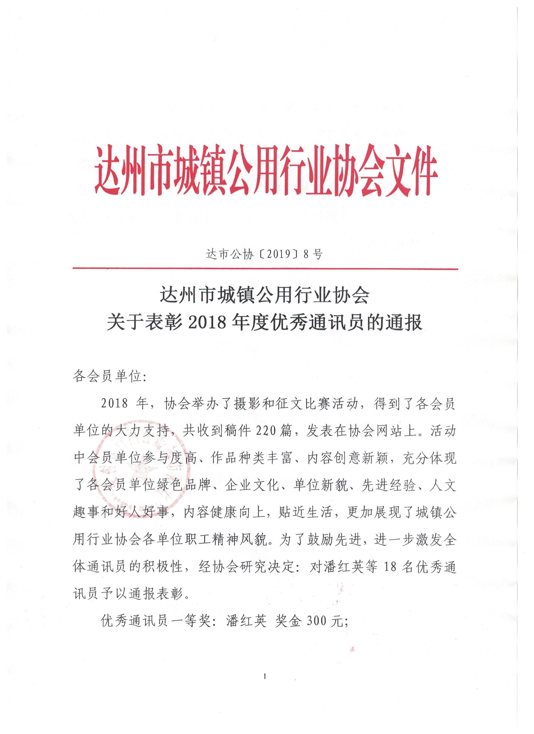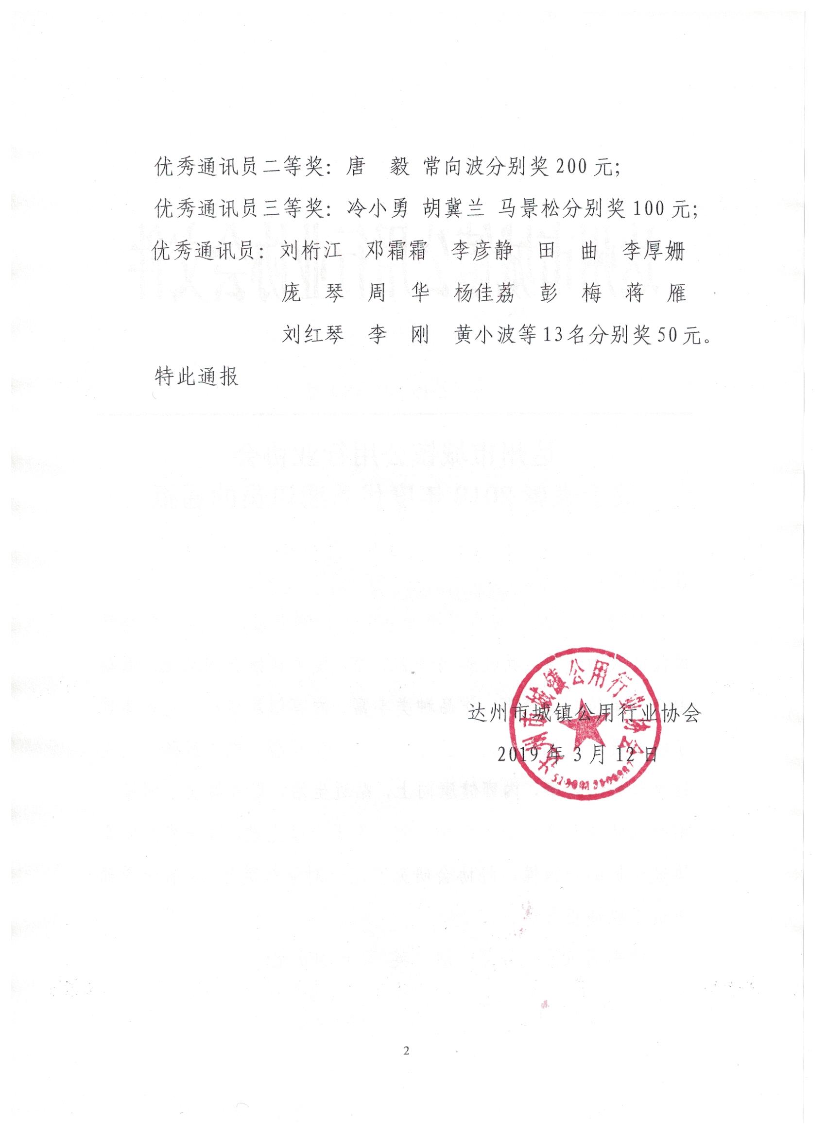 關(guān)于表彰2018年度優(yōu)秀通訊員的通報