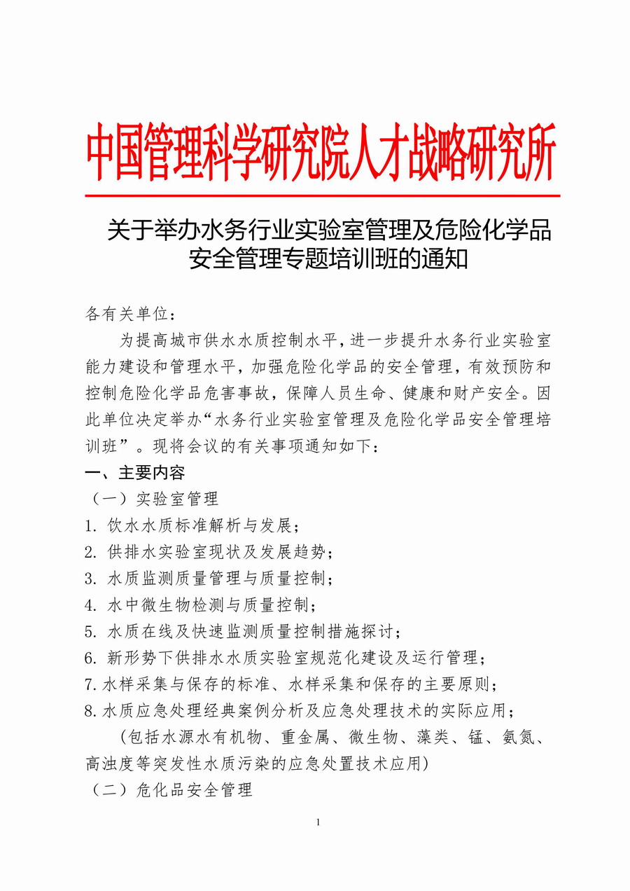 關(guān)于舉辦水務(wù)行業(yè)實(shí)驗(yàn)室管理及危險(xiǎn)化學(xué)品安全管理專題培訓(xùn)班的通知