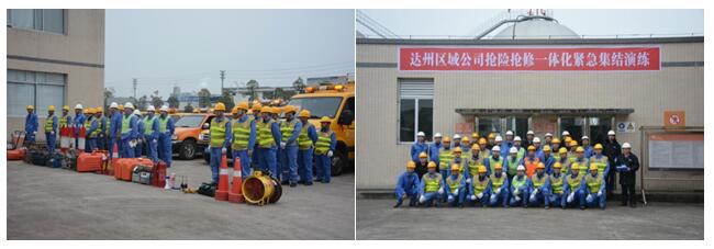 “各單位注意,現在時間2月26日上午6點整。我宣布2019年達州區(qū)域公司搶險搶修一體化緊急集結演練行動現在開始,請集結單位,帶齊裝備,到大竹縣騰飛大道1號大竹華潤燃氣儲配站集結待命。到達時間不得遲于9點30分,收到請回答”。隨著一條條緊急集結命令的下達,演練正式拉開帷幕。
