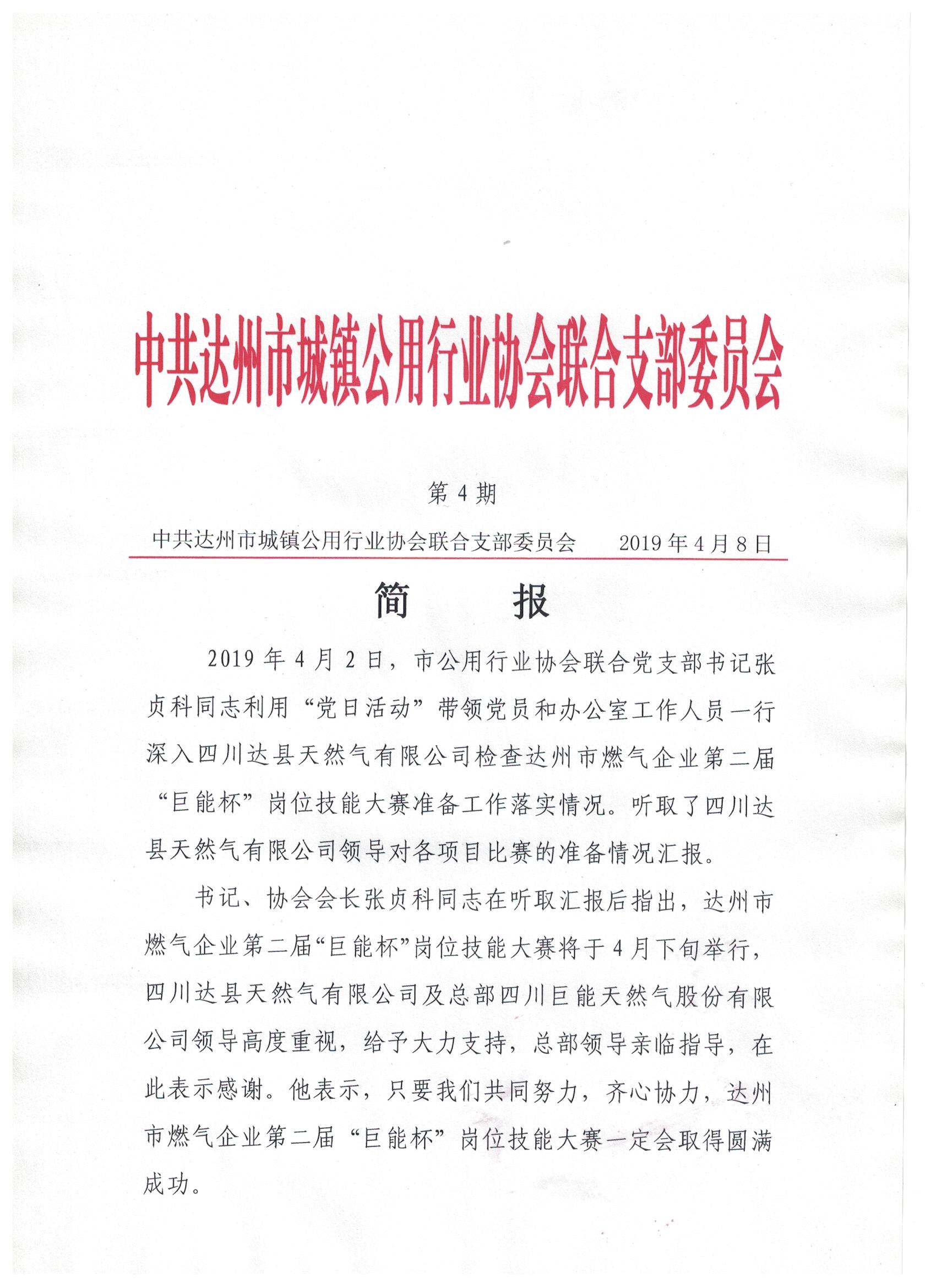 中共達(dá)州市城鎮(zhèn)公用行業(yè)協(xié)會(huì)聯(lián)合支部委員會(huì)2019年第四期簡(jiǎn)報(bào)