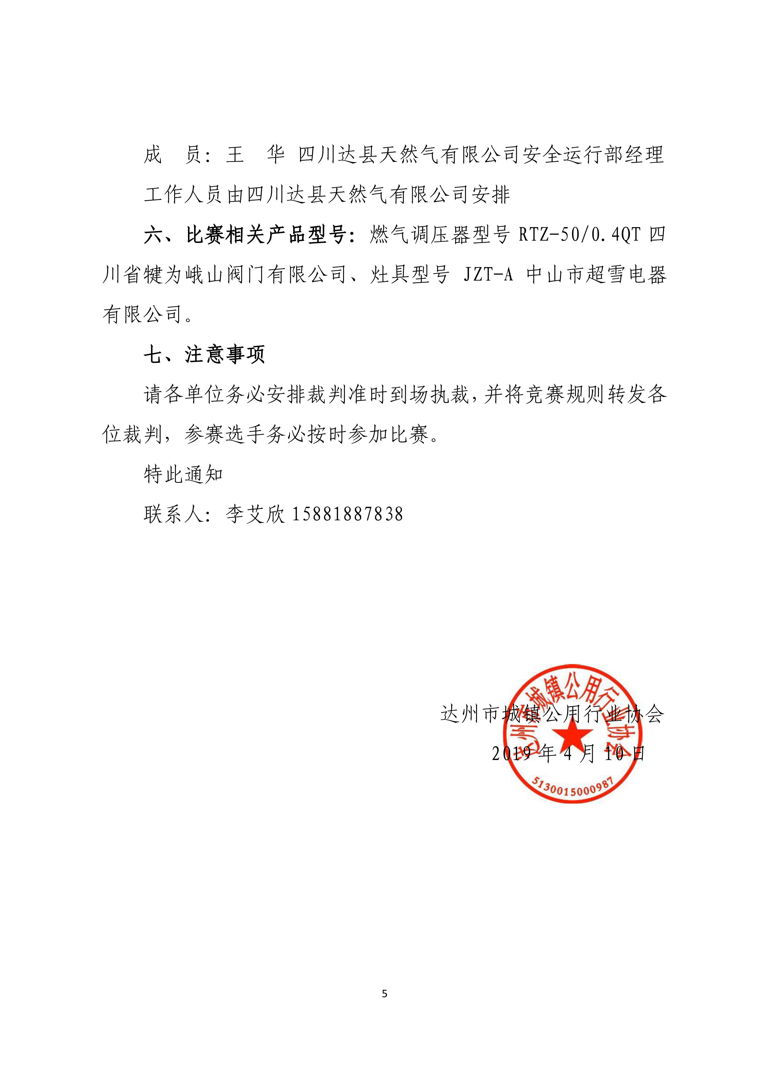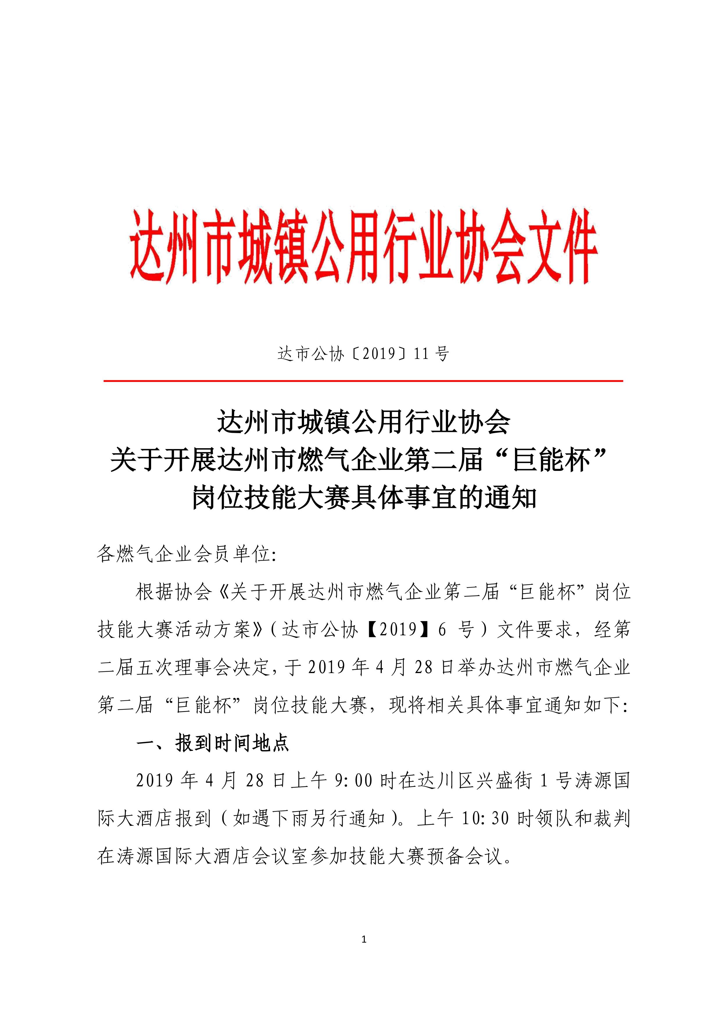 關(guān)于開展達(dá)州市燃?xì)馄髽I(yè)第二屆“巨能杯”崗位技能大賽具體事宜的通知