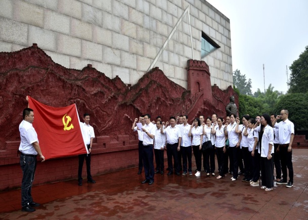 在講解員的帶領(lǐng)下,大家認(rèn)真參觀了中流砥柱館、正面戰(zhàn)場(chǎng)館、川軍抗戰(zhàn)館等。一幅幅歷史照片、一件件陳列物品生動(dòng)地展示了中華兒女救亡救國(guó)、奮勇殺敵的壯舉,讓大家真真切切接受了愛(ài)國(guó)主義教育,同時(shí)讓大家深深感受到革命先烈堅(jiān)定的理想信念和政治追求,在英雄的雕塑前面,大家重溫了入黨誓詞。
