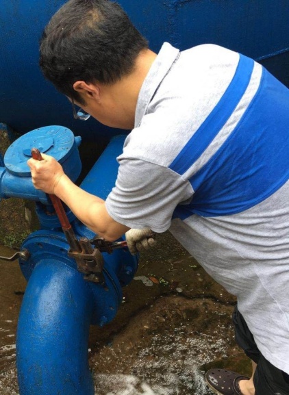 維修簡(jiǎn)訊:近日,龍?zhí)侗谜痉峙渌涞呐盼鄣y因內(nèi)部銹蝕嚴(yán)重導(dǎo)致閉合不嚴(yán),已無(wú)法正常使用。維修人員在拆卸蝶閥過(guò)程中,顧不上水箱排出的大水和底部排放的污泥淋濕弄臟全身,抓緊一切時(shí)間將幾百斤的舊蝶閥拆卸下來(lái)并重新安裝好新蝶閥,經(jīng)過(guò)將近三個(gè)小時(shí)的工作完成了更換工作,保證了全城人民的正常用水。