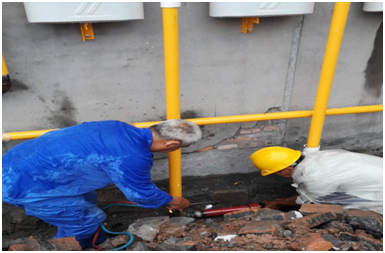 6月13日,李老師接到對(duì)大竹縣公安局戒毒所辦公樓燃?xì)庠O(shè)施進(jìn)行遷改施工的工作任務(wù),這幾天正值炎熱天氣,李老師頂著熱辣辣的太陽(yáng),毫無(wú)怨言的奮斗在施工現(xiàn)場(chǎng)。