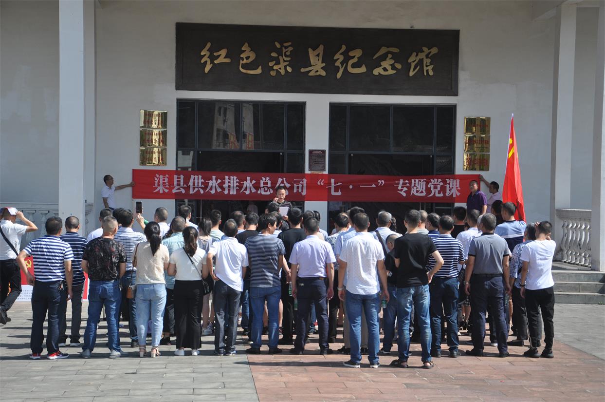 7月1日上午,渠縣供水排水總公司黨員一行61人在“紅色渠縣紀(jì)念館”慶祝黨的生日,向偉大的中國(guó)共產(chǎn)黨誕辰98周年獻(xiàn)上最誠(chéng)摯的祝福。激勵(lì)廣大黨員堅(jiān)定信心,傳承紅色基因,不忘初心,牢記使命。