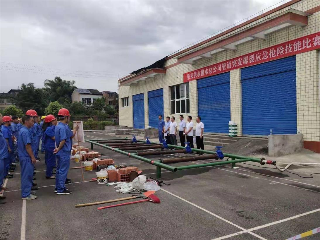 2019年7月11日,渠縣供水排水總公司防洪、防火、水污染應(yīng)急演練活動(dòng)和管道突發(fā)爆裂應(yīng)急搶險(xiǎn)技能比賽在東城水廠舉行。經(jīng)營(yíng)科、開(kāi)發(fā)科、臨巴水廠等部門(mén)協(xié)同參與。