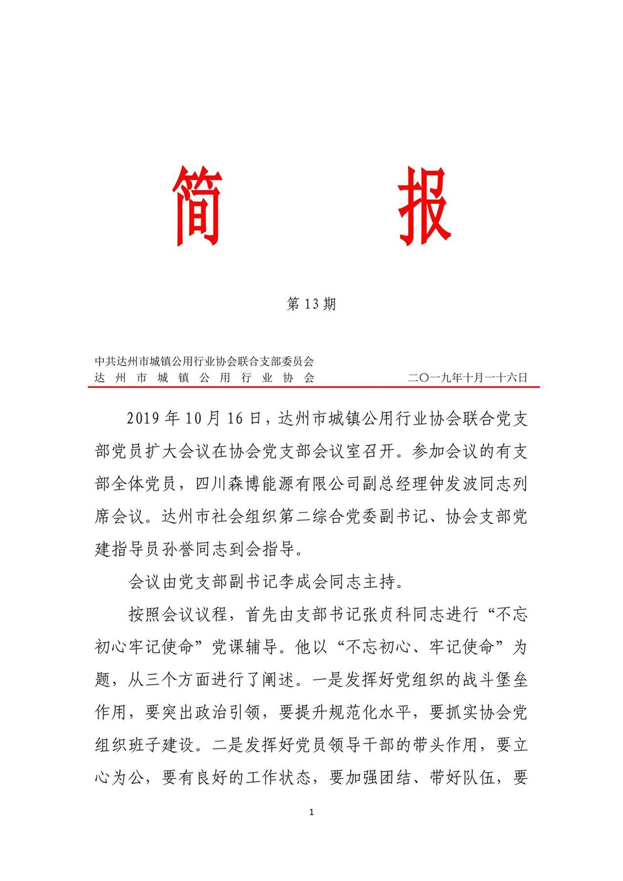 中共達州市城鎮(zhèn)公用行業(yè)協(xié)會聯(lián)合支部委員會2019年第十二期簡報
