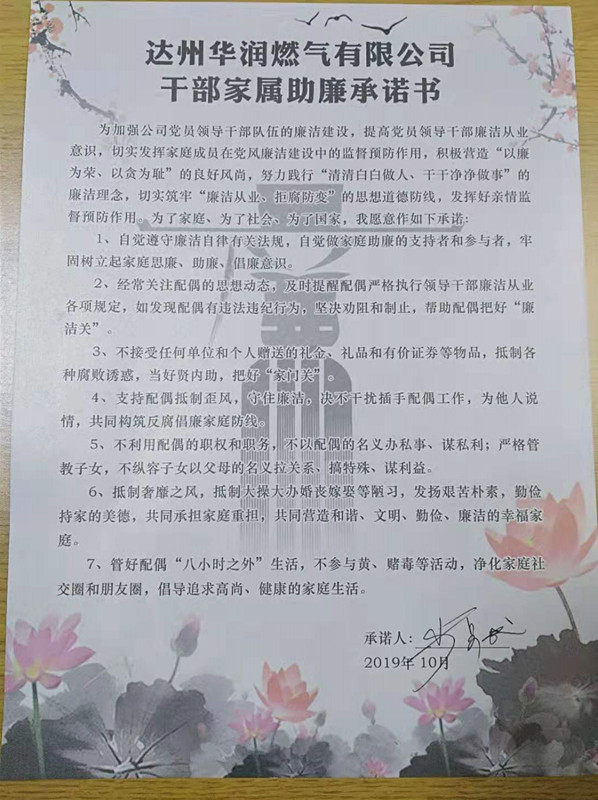 10月份以來,達(dá)州華潤(rùn)燃?xì)飧鶕?jù)上級(jí)安排部署,以“不忘初心、牢記使命”主題教育和集團(tuán)“廉潔教育學(xué)習(xí)月”相結(jié)合,圍繞“不忘初心 與廉同行”活動(dòng)主題,創(chuàng)新教育形式,開展“六廉”系列活動(dòng),公司廉潔建設(shè)向縱深推進(jìn)。