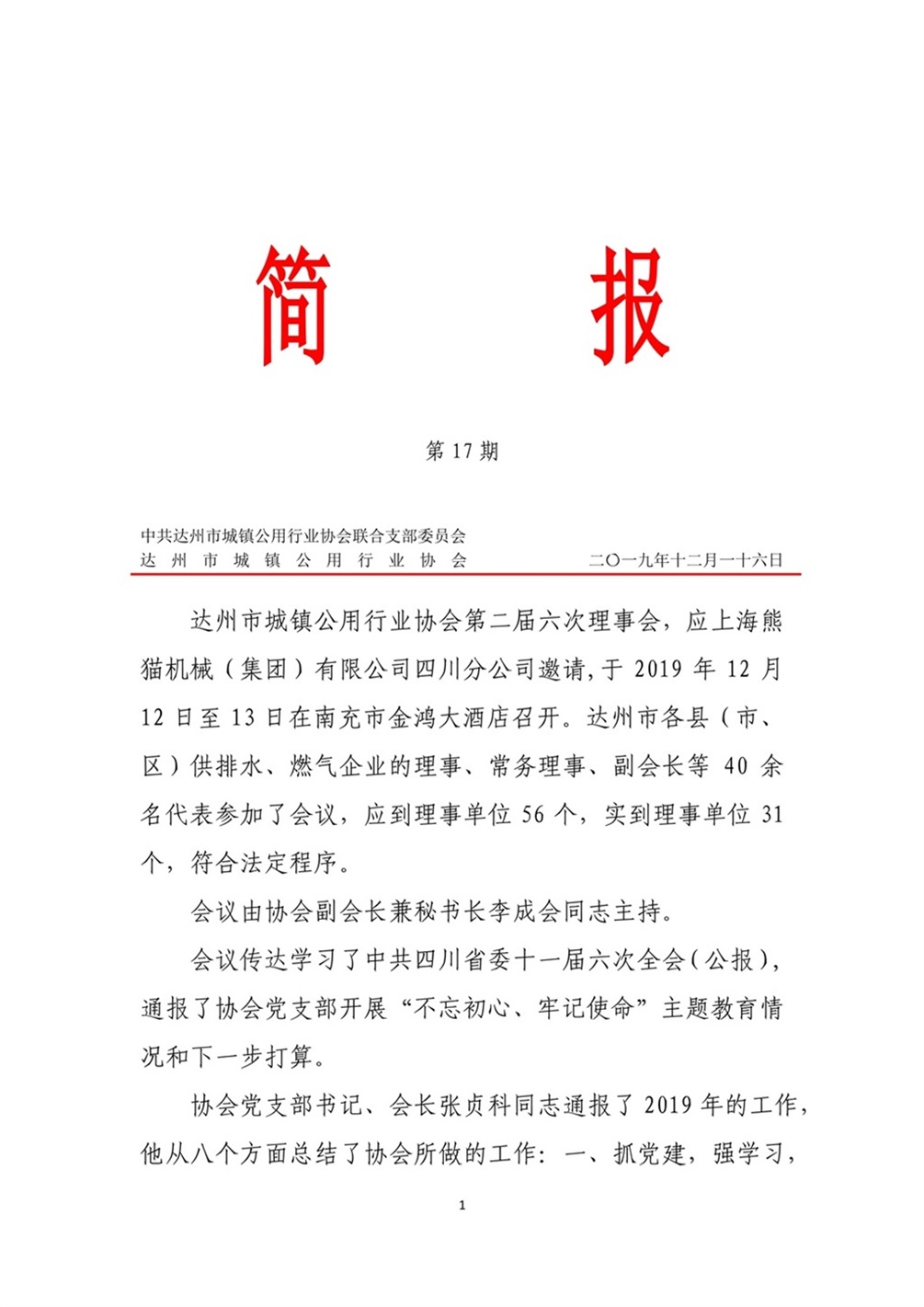 中共達州市城鎮(zhèn)公用行業(yè)協(xié)會聯(lián)合支部委員會2019年第十七期簡報