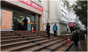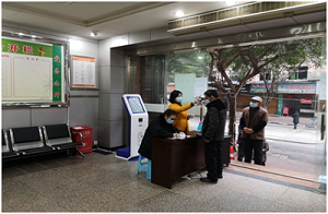 (二)重檢測。公司每天在營業(yè)廳門口安排了2名員工負責(zé)用戶體溫檢測、信息登記等,確保大廳內(nèi)同一時間只停留2名用戶辦理業(yè)務(wù),且2名用戶須保持間隔2米以上。