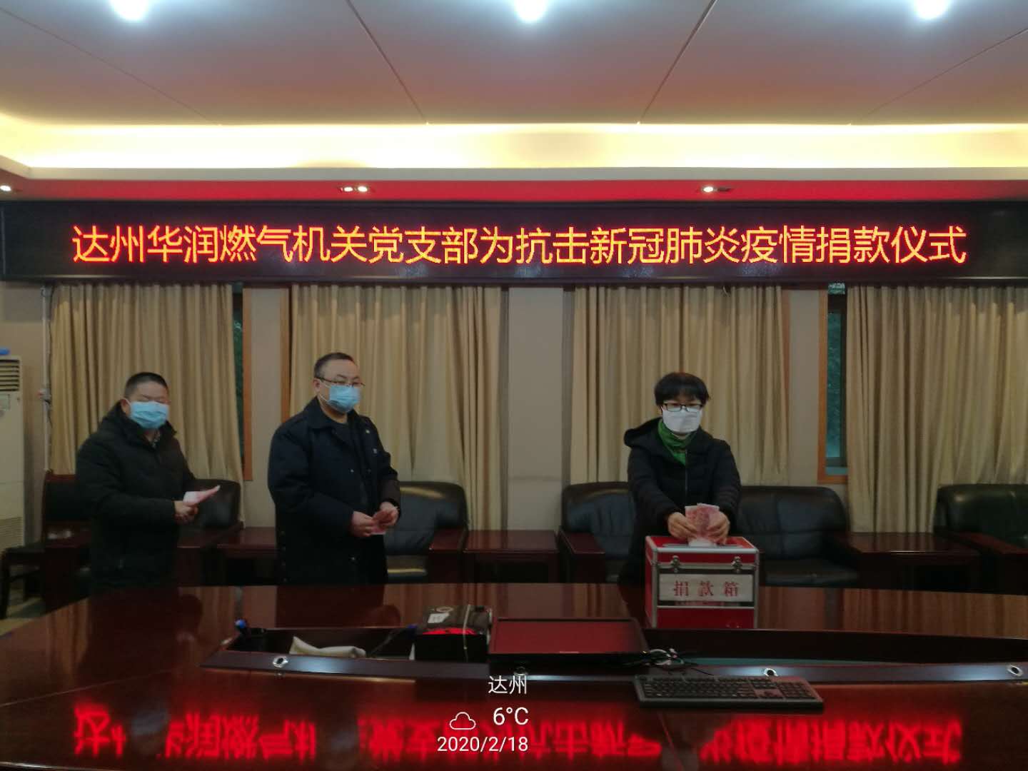 一方有難,八方支援,病毒無情人有情。為支持新型冠狀病毒感染的肺炎疫情防控工作,凝聚起眾志成城抗擊疫情的強大力量,2月18日上午,達州華潤燃氣舉行了“抗擊疫情 你我同行”愛心捐款儀式。公司領(lǐng)導(dǎo)班子成員及部分中層管理人員參加,現(xiàn)場收到愛心捐款1.1萬元。
